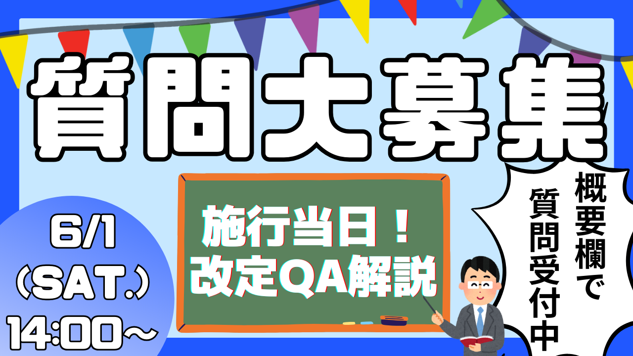 【6月1日(土)開催・見逃し配信】YouTubeライブ配信「【質問大募集】施行当日ライブ!改定QAと視聴者様からの質問解説!!」