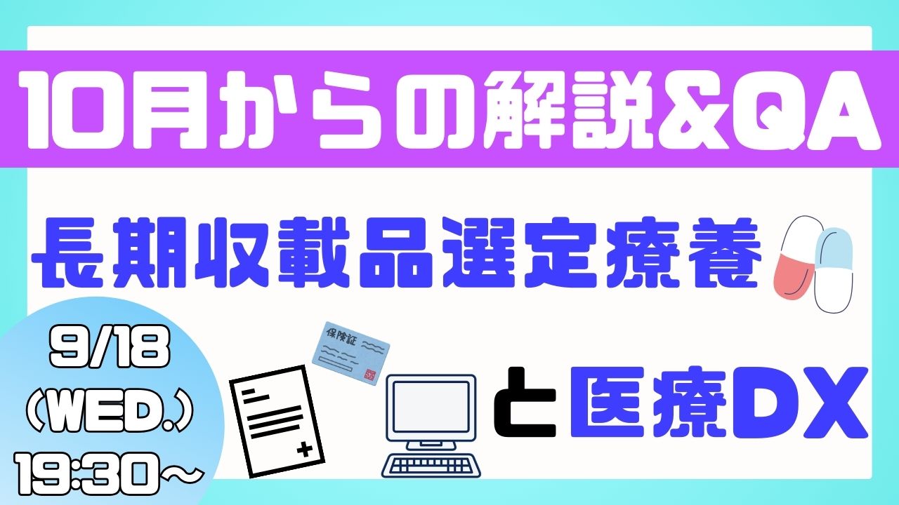 【9月18日(水)開催・見逃し配信中】YouTubeライブ配信「10月からの長期収載品選定療養と医療DX解説&QA」