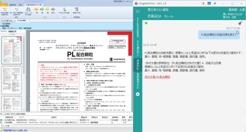 AIアシスタントが、薬剤師の質問を理解し、添付文書内を検索・回答します。