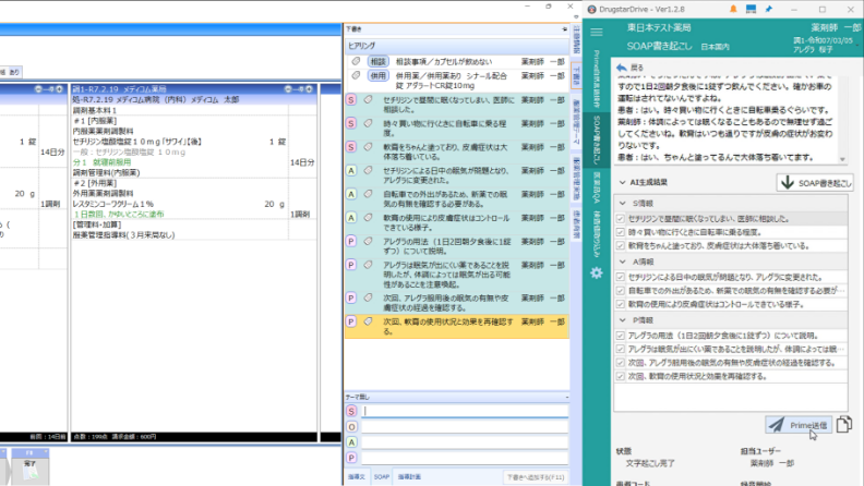患者と薬剤師の会話を識別し、SOAPで薬歴に取込み