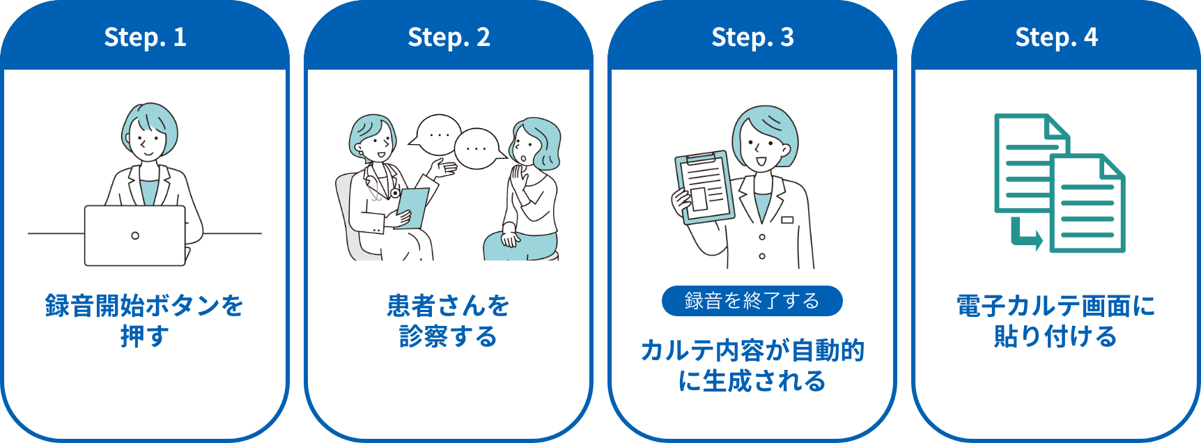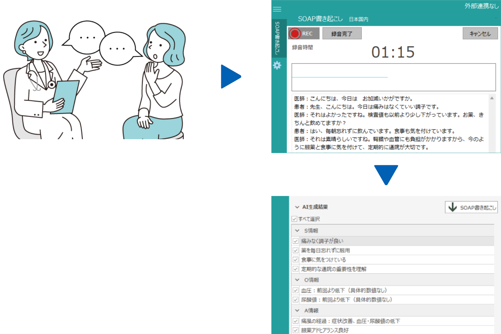 患者さんと医者の会話内容から電子カルテを自動的に作成します。